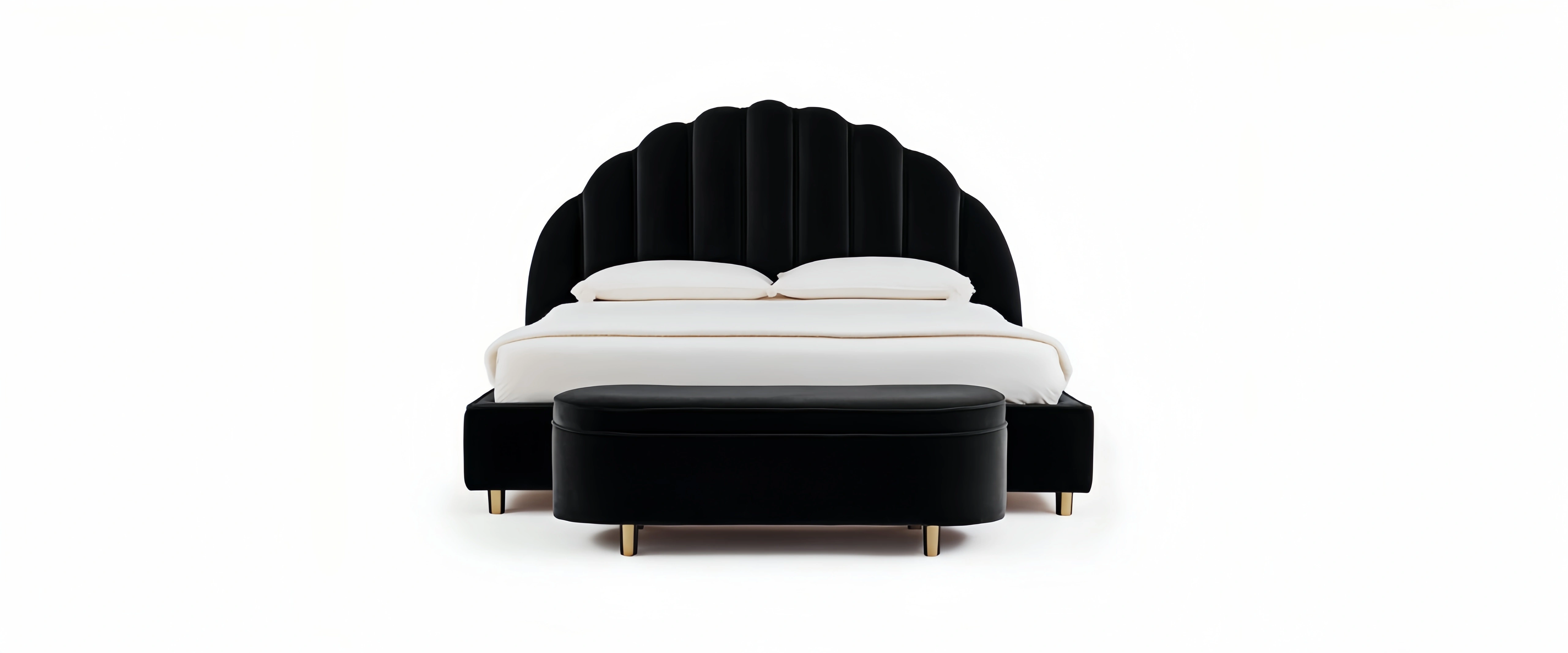 Ce lit double au design contemporain se distingue par sa tête de lit rembourrée à rayures verticales et son ensemble harmonieux. Il apporte une touche élégante et moderne à la chambre tout en créant un espace de repos confortable.